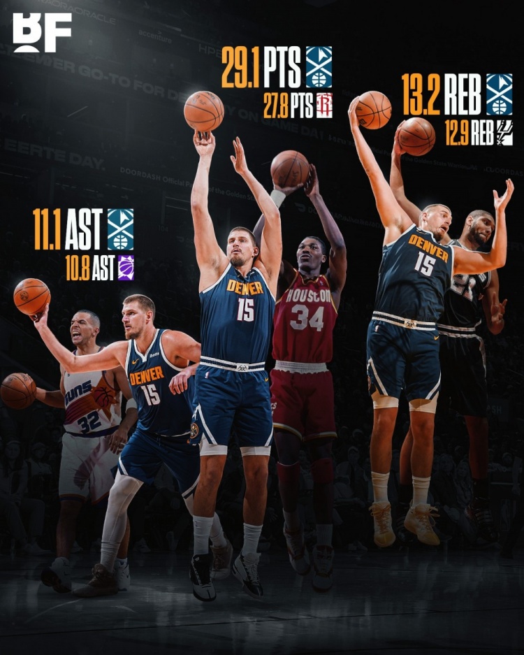 Jokic đang ghi trung bình 29,1 điểm, 13,2 rebound và 11,1 kiến tạo mỗi trận trong mùa giải này