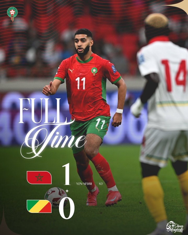 Ở vòng cuối cùng của vòng sơ loại World Cup khu vực châu Phi, Maroc đã đánh bại Congo 1-0 trên sân nhà.