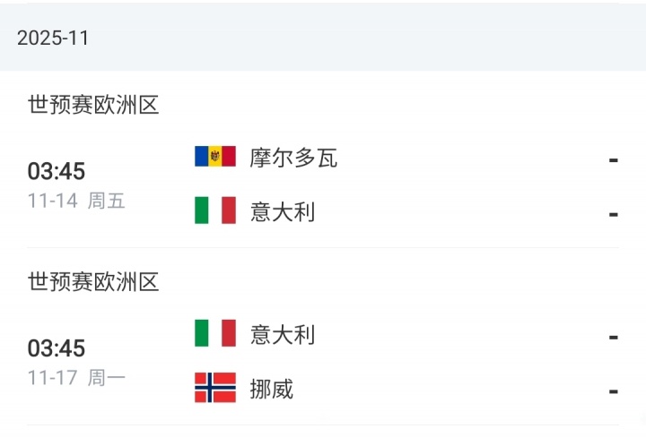 Ý đã công bố vòng sơ loại World Cup vào tháng 11. Italia sẽ trực tiếp đấu với Na Uy trong tháng này. Đội bóng hiện kém Na Uy 3 điểm và hiệu số bàn thắng bại là 16.