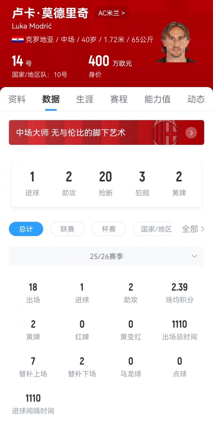 Tốc độ thi đấu một trận một tuần ở AC Milan mùa này tương đối phù hợp với Modric. Năm tới chúng ta sẽ thấy anh ấy thi đấu ở World Cup lần thứ năm. CLB Milan cũng có kế hoạch gia hạn hợp đồng với cựu binh thêm một năm.